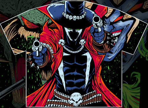 Spawn AOP T shirt. This product is a pre-order, but will be in hand in about 2 weeks. Please read carefully before purchasing. Limited pre-orders. Secure this beauty before it sells out.